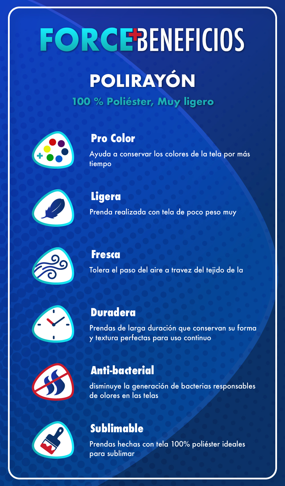 Modelo olímpico Polirayon, Poliéster 100%